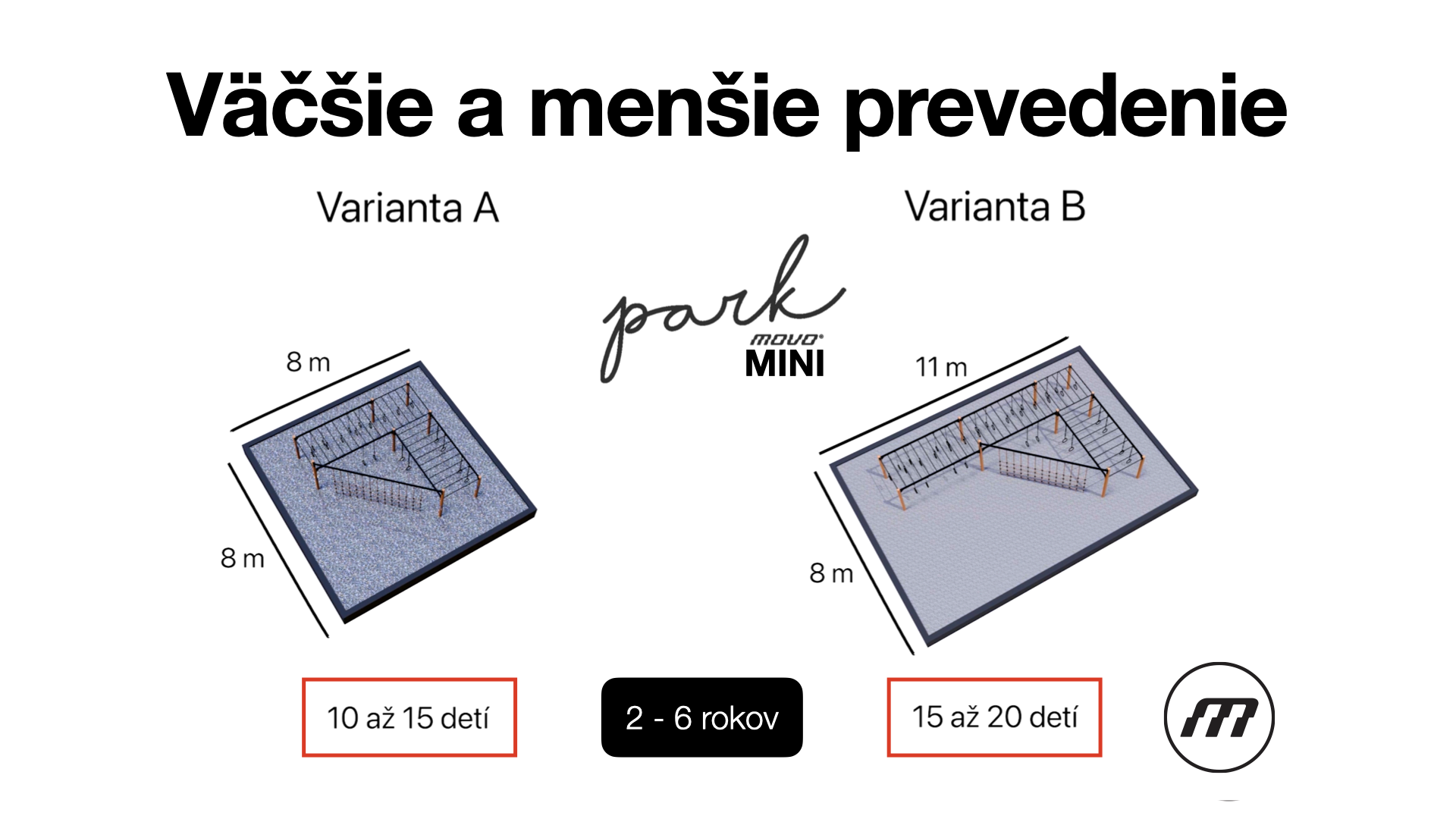 V predškolskom veku 2 až 6 rokov, sa formujú mnohé návyky, postoje i vlastnosti, ktoré ovplyvňujú kvalitu zdravia i vedomia budúceho dospelého človeka. Pohyb najmenších detí je realizovaný formou zábavy či pohybových hier. A je to tak správne, pretože cez pohybový zážitok si dieťa má šancu osvojiť celoživotný zvyk hýbať sa prirodzene a často. Ak v predškolskom zariadení chýbajú cvičiská, ktoré umožňujú komplexnejší rozvoj pohybových zručností, je to veľká škoda. Prinášame nasledovné riešenie, ktoré poteší nielen rodičov ale aj pedagógov. Spoločne tak zavedieme kultúru pohybu do predškolských zariadení pre naše najmenšie deti.