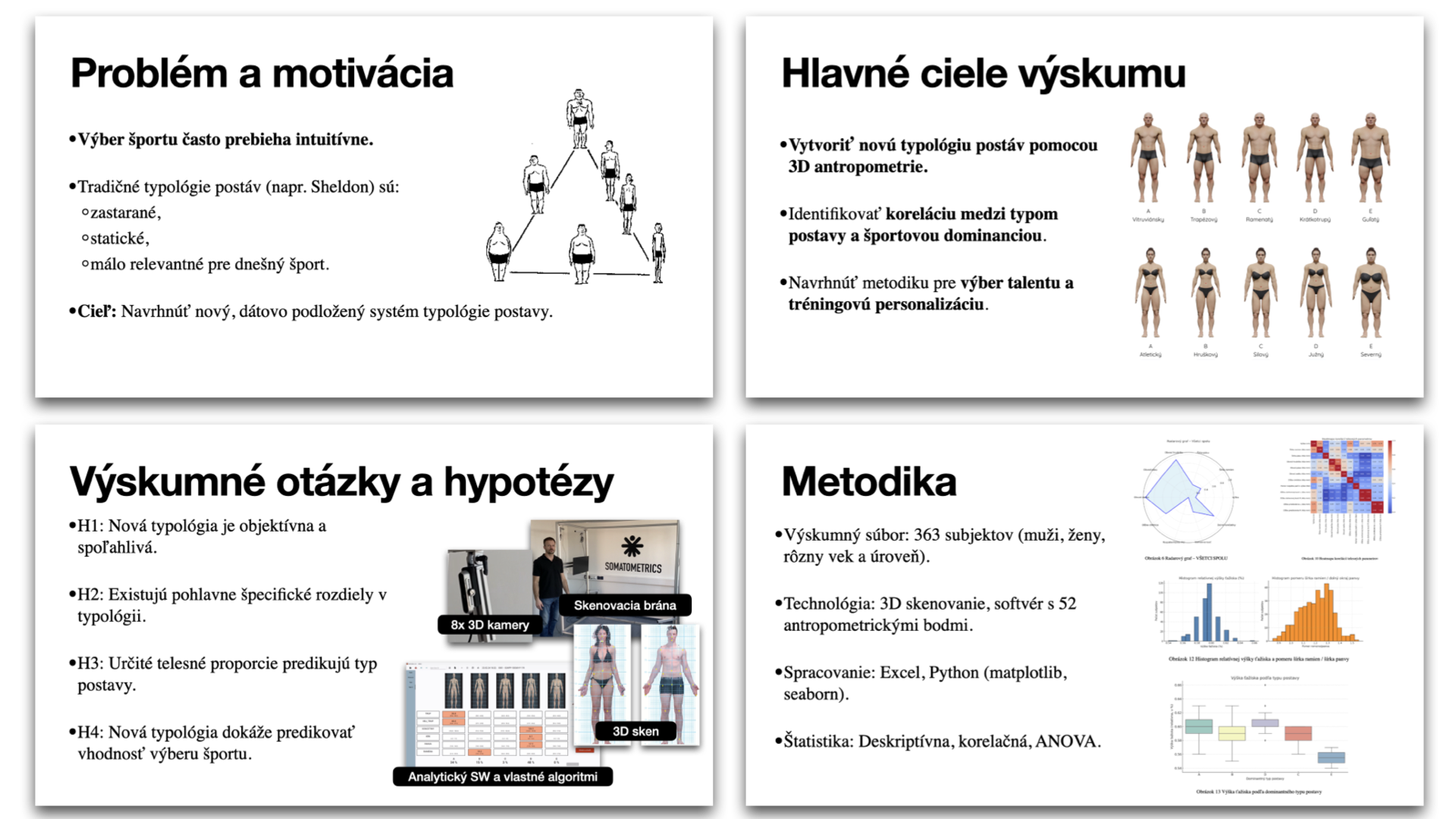 Predpokladajme, že eviduješ náš výskumný projekt s pracovným názvom Somaton. V tomto článku ťa zoberiem do zákulisia môjho dlhodobého vedeckého projektu o typológii postáv. Vďaka 3D skenovaniu a digitálnej antropometrii sa mi podarilo vytvoriť metodológiu, ktorá má ambíciu prepísať staré učebnice o tom, ako sa pozeráme na ľudské telo. Dozvieš sa, ako sme vytvárali nové kategórie postáv (typ A-B-C-D-E), aké technológie sme použili, čo všetko sme zmerali a najmä – čo bude nasledovať. Nájdeš tu aj moju prácu na stiahnutie, ilustrácie, prezentáciu z obhajoby a výzvu na spoluprácu pre všetkých vedeckých pracovníkov, ktorých táto téma osloví. Verím že aj tebe osobne tento vedecký nástroj niečo prinesie a dozvieš sa to z článku.