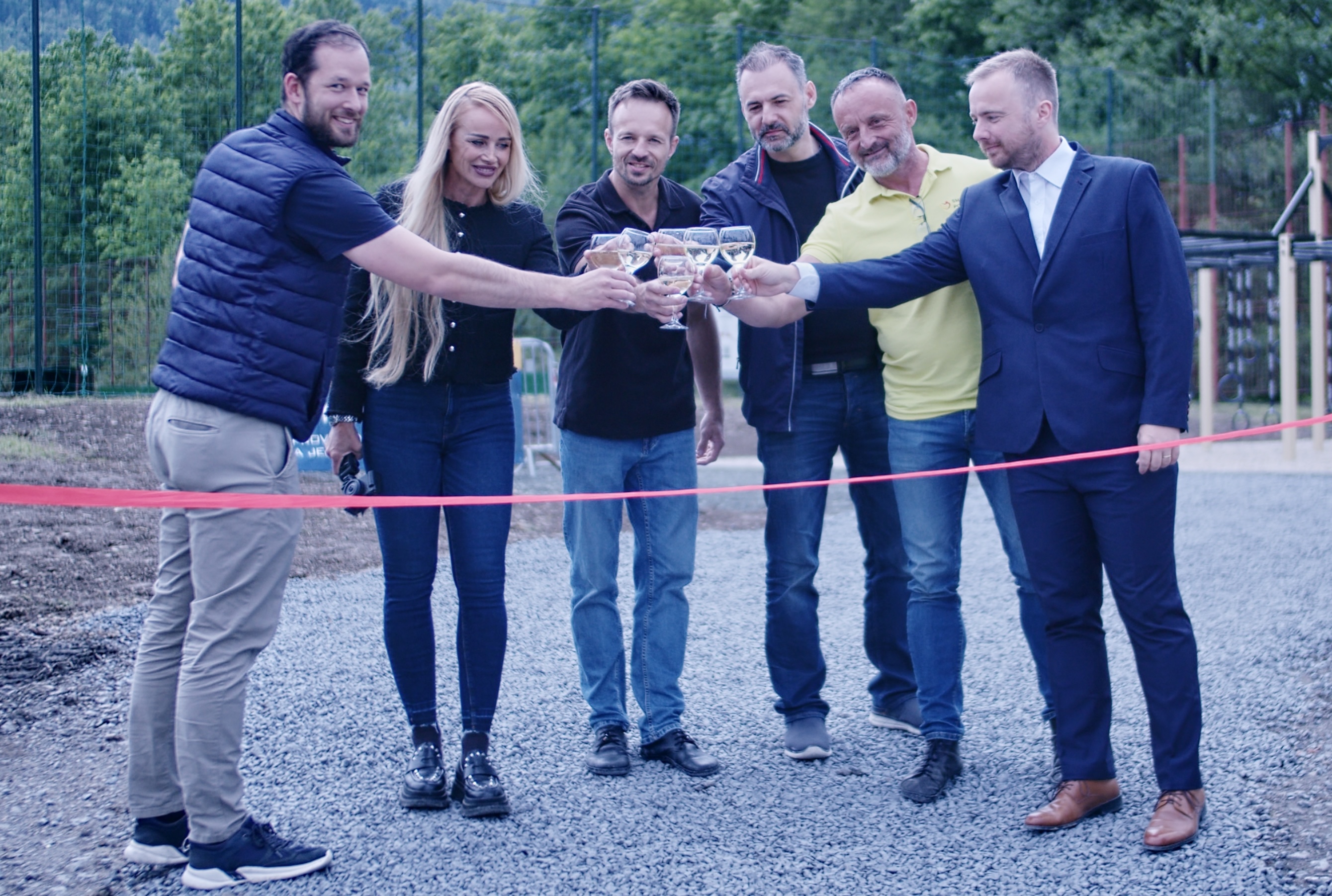 Na fotke zľava: Mgr. Petr Piekar (MAS Pobeskydí, z. s), Tina Zlatoš Turnerová a Vlado Zlatoš (MOVO park), Ing. Jiří Vankát (stavebná firma STAVORENOL STAVEBNÍ s.r.o.), Mgr. Martin Eschner (starosta obce Smilovice), Ing. Martin Lipowczan (riaditeľ příspěvkové organizace Sportcentrum Smilovice)