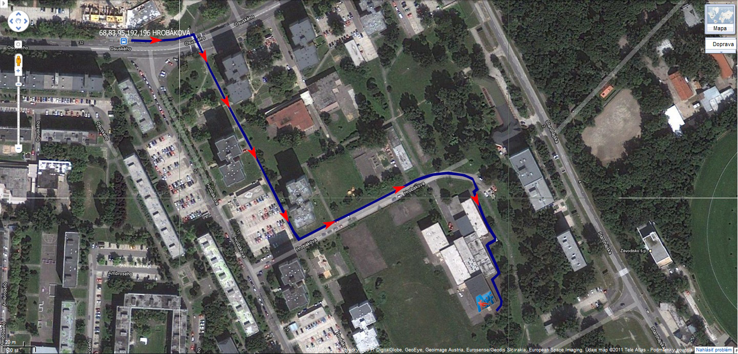 Vystúpiš na zástavke Hrobáková - smer Technopol. Vrátiš sa kúsok naspäť a prejdeš cez prvý prechod pre chodcov. Oproti prechodu pre chodcov je dlhá ulica. Pôjdeš po ulici až kým narazíš na cestu pre autá. Po tej ceste pôjdeš v ľavo až na koniec. Objavíš sa pred vchodom OA Imricha Karváša - Hrobáková 11. Vedľa budovy vedie cestička (jednosmerná ulica) poza školu (v areáli školy), tá ťa dovedie až do APF telocvične Skill Lab. Pozri si mapu ktorá ti ukáže presne ako: