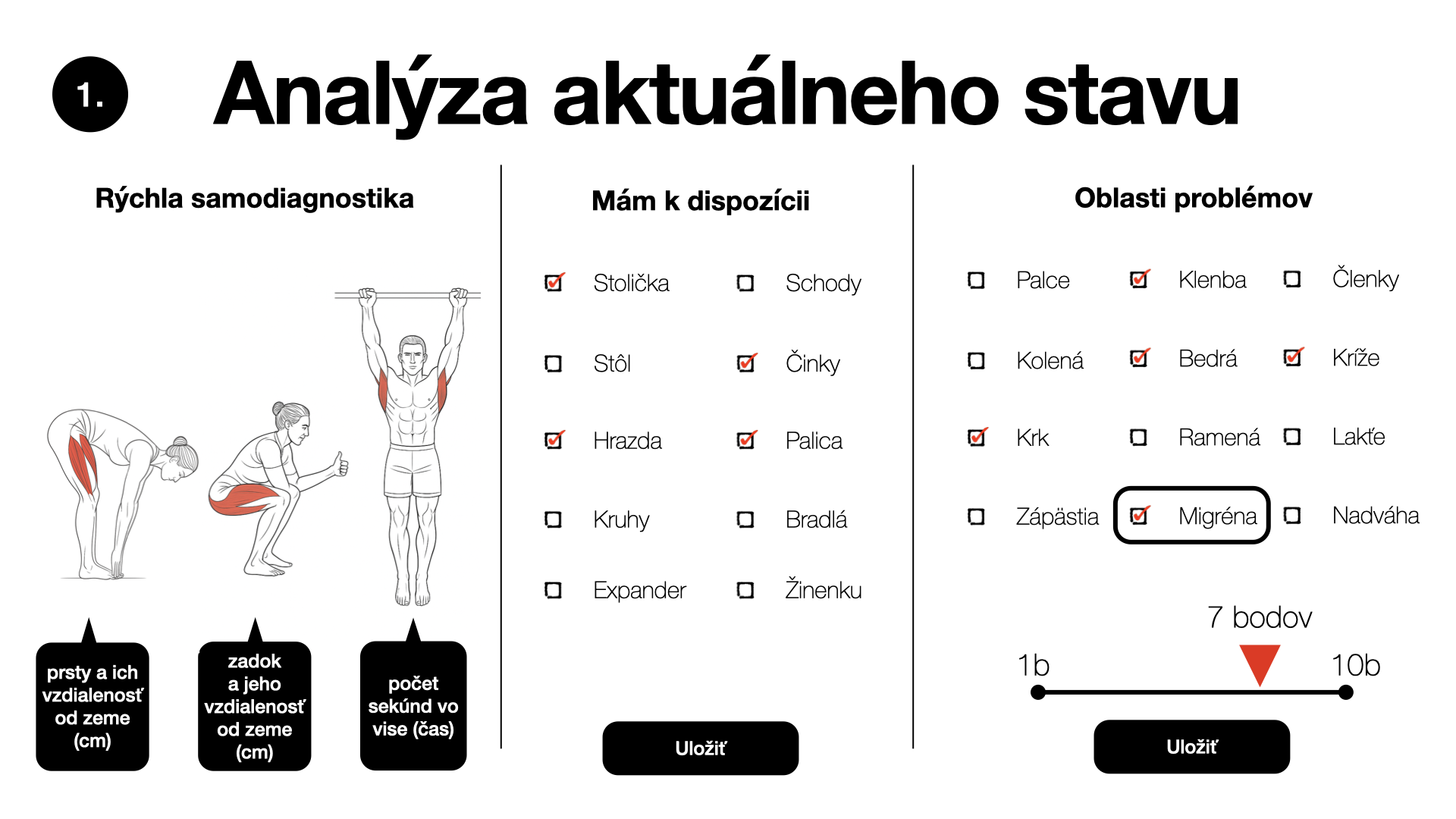 - každý deň si riadiť pohyb cez aplikáciu, ktorá individuálne dávkuje objem i druh pohybu podľa predpisu