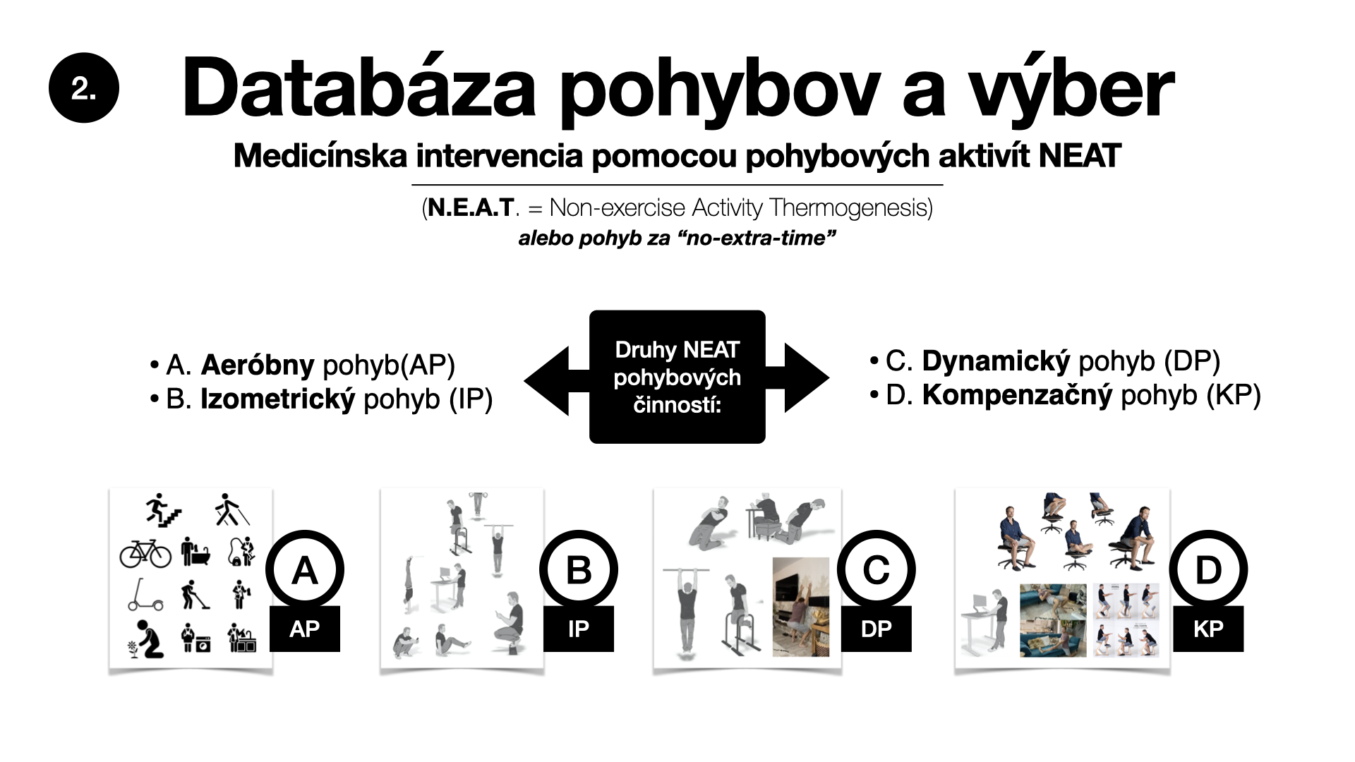Lenže pohyb je veľmi komplexná vec, ktorú treba dômyselne dávkovať. Je to modalita, ktorá má silnejšie účinky ako lieky či zdravotné zákroky a pohyb (resp. vyššia kondícia) dokážu vyriešiť väčšinu zdravotných problémov, ktorými trpí moderný človek. Aby táto digitálna služba bola aj užitočná, musí zamestnanca sprevádzať na ceste pohybom postupne a primerane. Tu sú príklady ako môže v praxi fungovať pohyb na predpis: