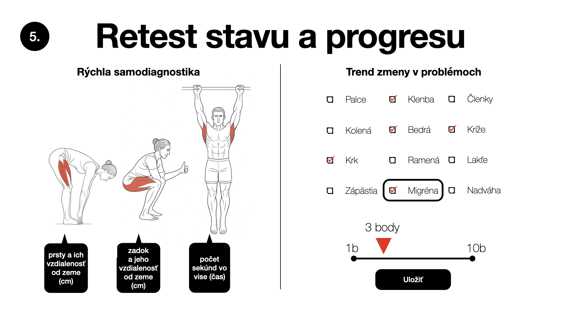 - 5) za 2 až 3 mesiace sa opakuje diagnostika a vyhodnocuje zlepšenie (meranie aj dotazník)