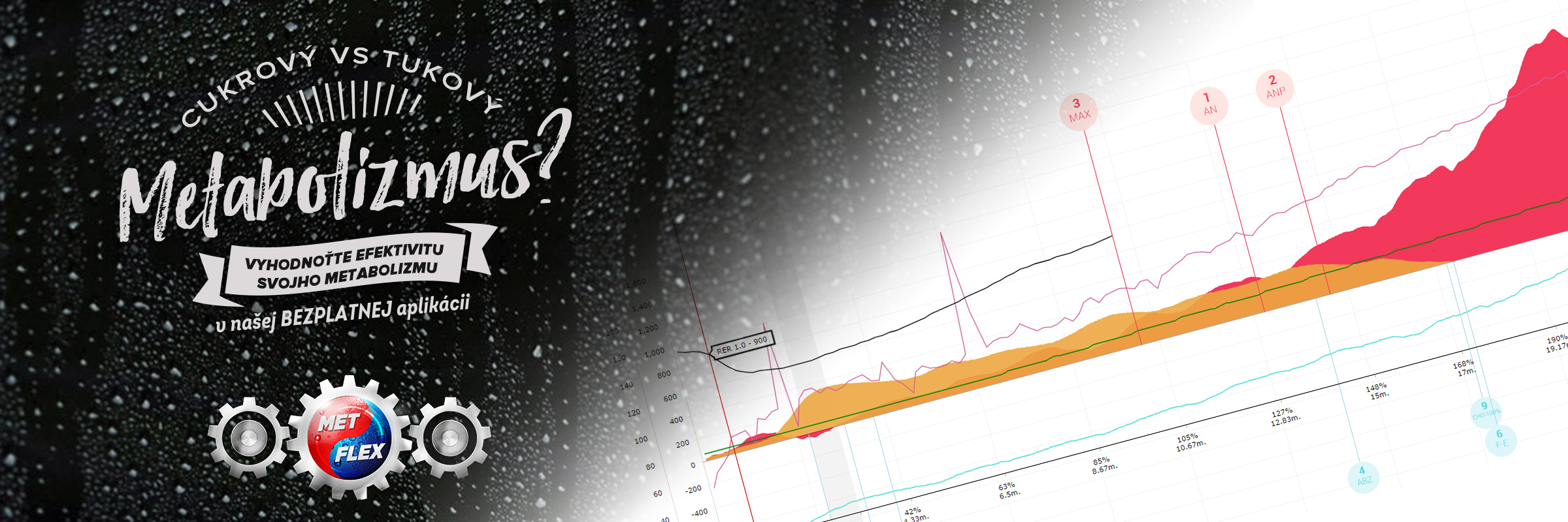Fyzická kondícia a metabolická kondície nie sú jedno a to isté. Preto na analýzu metabolizmu používame spiroergometrické prístroje, ktoré s prehľadom dokážu analyzovať oba druhy kondície. V praxi sa používajú už vyše 30 rokov a stoja na robustných vedeckých základoch. Na týchto základoch sme postavili aj našu aplikáciu METFLEX, pomocou ktorej tieto vygenerované dáta zobrazujeme inak, ako je tomu za pomoci týchto prístrojov bežné. Vytvorili sme sériu nástrojov, grafov, vzorcov a mechanizmov, ktoré ako nadstavba pomáhajú analyzovať vašu metabolickú kondíciu. Tak napríklad v nasledovnom obrázku môžete vidieť sériu dát. Tie zobrazujú ako metabolizmus jedinca odpovedá na fyzickú záťaž a pri akom pulze / wattoch / rýchlosti sa dejú rôzne zmeny: