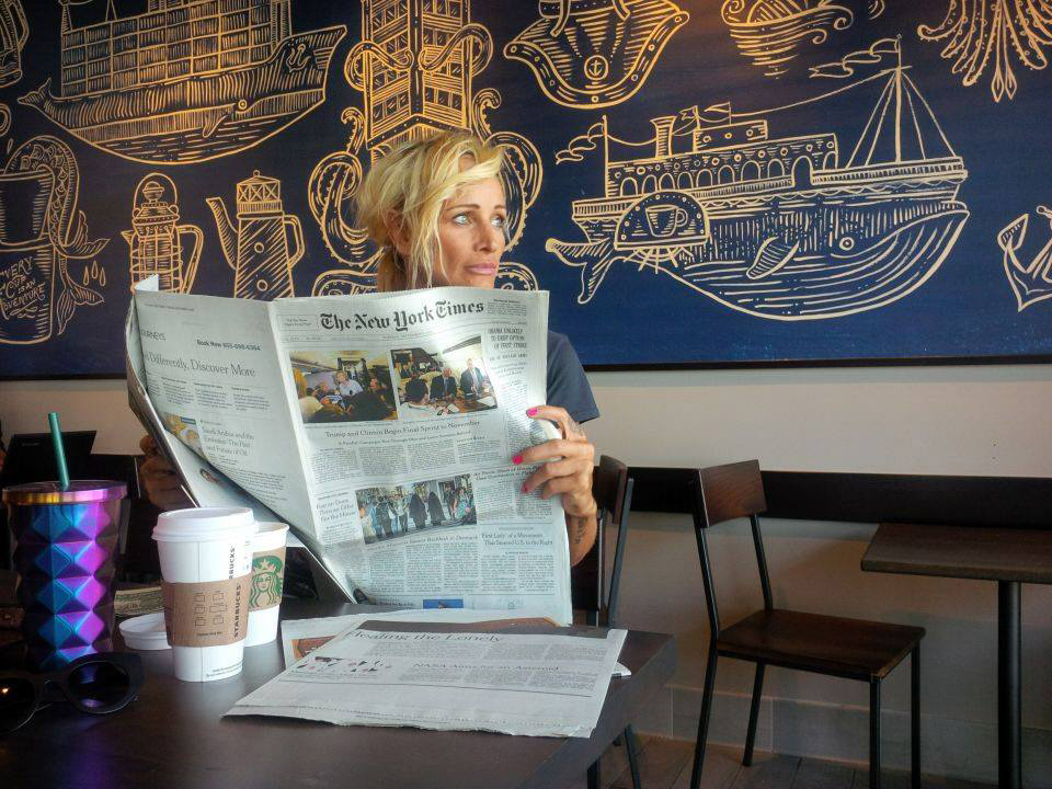 Tina: Skvelý formát amerických novín sme si obľúbili. V preklimatizovanom Starbuckse sme si užili aj takéto momenty.
