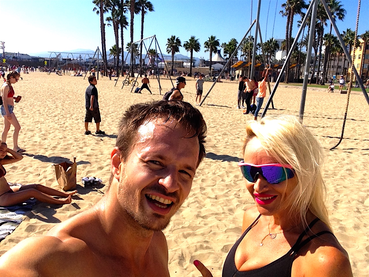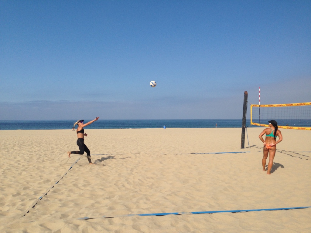 Tina: Každá jedna pláž v Los Angeles je fascinujúca a krásna. Moja kamarátka Dalida býva na Hermosa beach a tam aj trénuje beach volejbal. Na tréning sme sa preto dohodli práve tam. Obrovský výhľad na oceán, nikde nikto, ideálne počasie a more piesku. Pre mňa nič viac k životu nie je treba! Skvelo sme si zahrali aj s poľskými volejbalistkami.