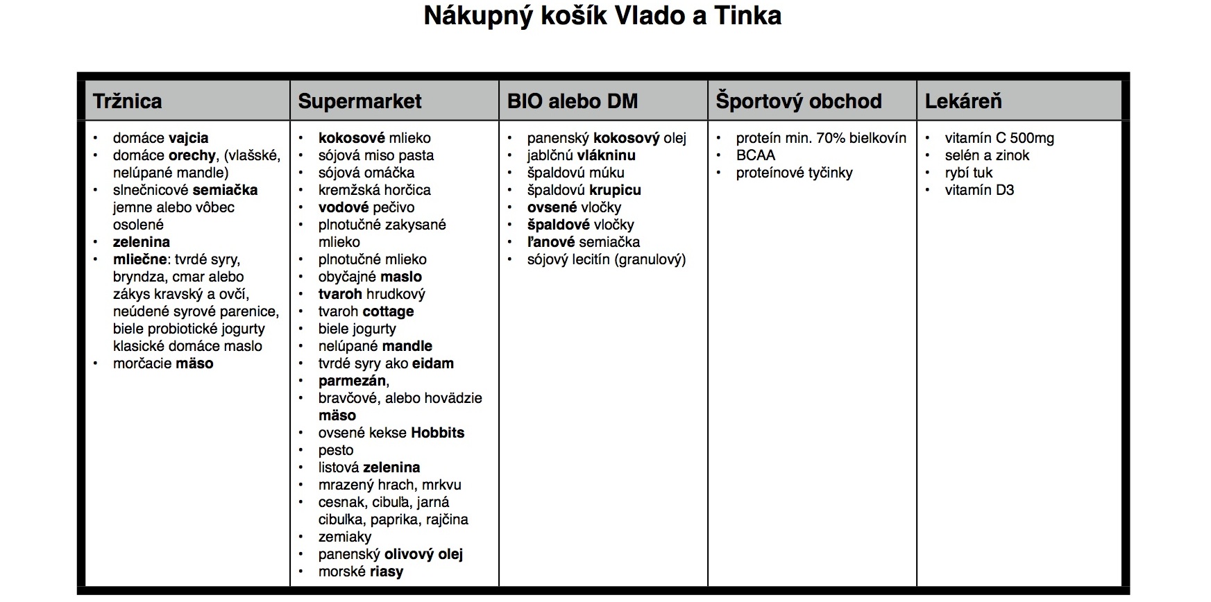 Vyrátali sme presne koľko stojí výživa pre dve športujúce osoby priemernej hmotnosti (muž a žena) v jednej domácnosti. Ide samozrejme o nás dvoch a na to, aby ste pochopili ako funguje naše stravovanie, by ste mali vedieť čo presne vkladáme do nákupného košíka. Aj na túto tému sme už napísali jeden článok v našom blogu a tu vám prinášame prehľadnú tabuľku nášho nákupného košíka, ktorú nosíme vždy v peňaženke na nákupy.