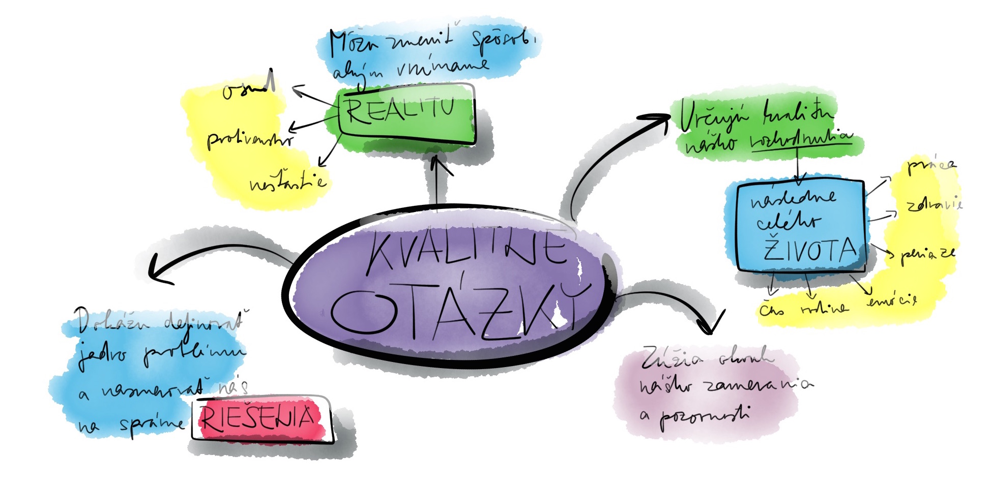 Otázky dokážu zmeniť náš život. Vďaka nim môžeme určitým veciam i okolnostiam v našom živote (dobrým či zlým) pripisovať vyšší význam. Znamenajú kľúčový bod zlomu obzvlášť vtedy, ak začneme na ne hľadať odpovede, ktoré potom aplikujeme do nášho života. Takéto provokujúce otázky sme sa pokúsili zostaviť aj my. Sú to otázky, ktoré si pravidelne kladieme a provokujeme nimi nášho ducha k tomu aby sa vzchopil, našiel cestu k excelentnosti a napĺňal svoj potenciál. Dobrý život však neformujú len otázky ktoré si položíme ale aj tie, ktoré si nepoložíme. Museli sme sa stať špecialisti na kladenie si dobrých otázok, aby sme si dokázali vytvoriť taký životný štýl, aký máme dnes. Viac o databáze životne dôležitých otázok TU.