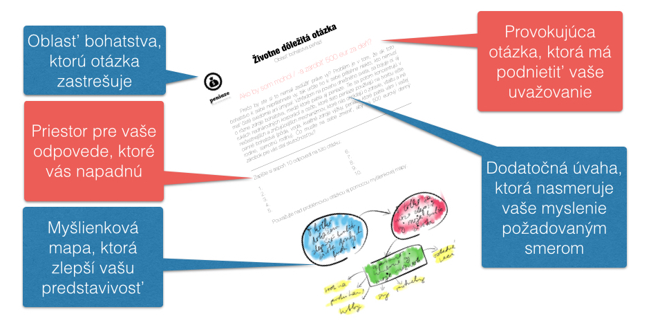- databáza životne dôležitých otázok (ide o súbor mentálnych nástrojov, otázok i myšlienkových máp, ktoré nám pomáhajú nájsť cestu v dnešnom svete, kde je dôležité naučiť sa pozerať do svojho vnútra).