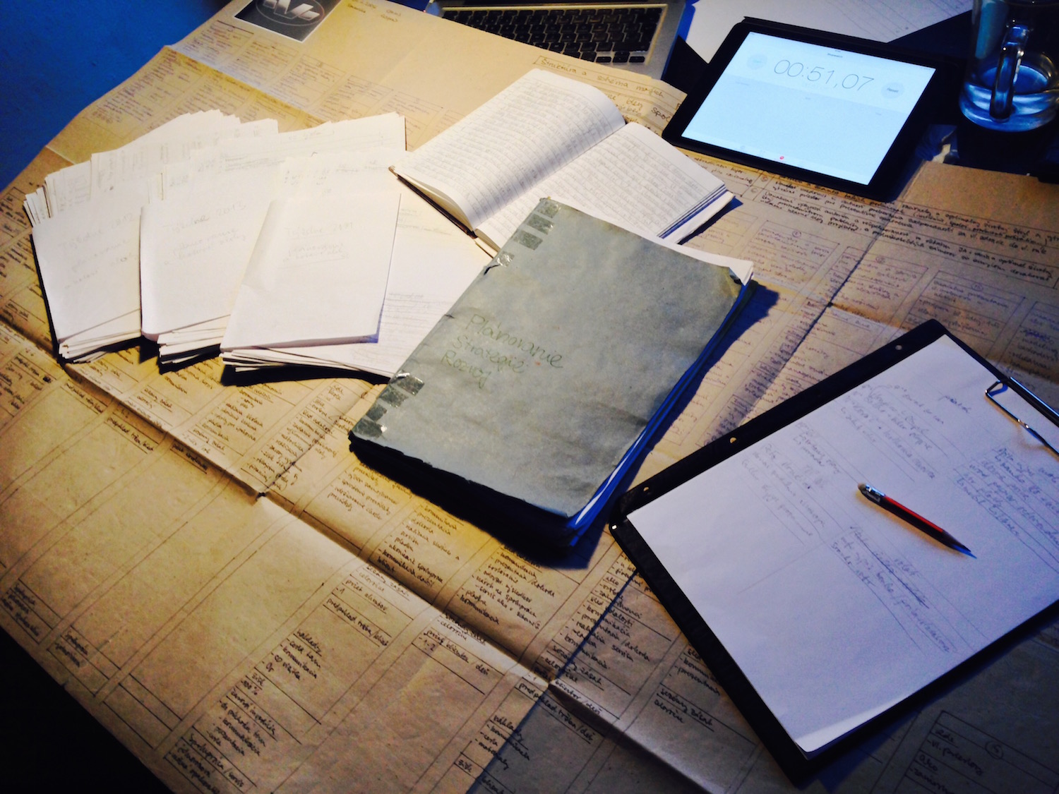 Na obrázku nájdete naraz veľký celoživotný plán (podkladový plagát), na ktorom je v rohu napísaný dátum 24.6.2006 o 20:00. Až strašidelné je, ako sa vaše jednotlivé plány plnia, keď sú niekde napísané a vy na nich jednoducho pracujete. Ďalej môžete vľavo vidieť tri posledné roky týždenných plánov (52 ks. / rok), kde sú evidované všetky prioritné úlohy týždeň za týždňom. Hore je otvorený denník najdôležitejších udalostí, ktorí slúži na zaznamenávanie každej zmysluplnej udalosti, ktorá nemusí byť len pracovného charakteru. Ďalej vidieť fascikel s plánovaním a aktuálnymi projektovými úlohami a na stole nechýbajú provokačne stopky i plán denných činností s ceruzkou. Nie je toto náhodou vlastná mapa pre úspešný život? Sledovanie vývoja niektorých životných udalostí je zaujímavá sebaanalýza, ktorú odporúčame každému. S tvorbou vlastnej životnej mapy nečakajte na nikoho. Začnite s jej prípravou už dnes.
