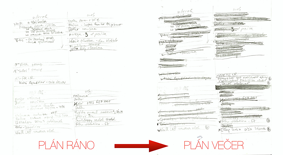 Viac ako 100x čítať, bude pre vás asi užitočnejšie pozrieť si nasledovný video mikrodokument. V ňom vám prezradíme ako si plánovať svoj čas. Je to prvý pokus v ktorom vám ponúkame nahliadnutie za dvere našej “kuchyne”, v ktorej varíme pre vás tie najvýživnejšie myšlienkové pokrmy, aké sme schopní vyprodukovať. Pochopíte, ako vyzerá náš myšlienkový svet na tej najdetailnejšej úrovni a tak nás spoznáte o trochu viac. Uvidíte ako rozmýšľame a prečo niektoré veci fungujú tak, ako fungujú. V budúcnosti plánujeme vytvoriť viac takýchto video seriálov, ktoré sa budú týkať rôznych oblastí. Tie najdôležitejšie myšlienky si pre vás pripravíme do prednášky, ktorú môžete absolvovať. Už čoskoro spustíme verejnú platformu, cez ktorú sa do takejto prednášky môžete prihlásiť.